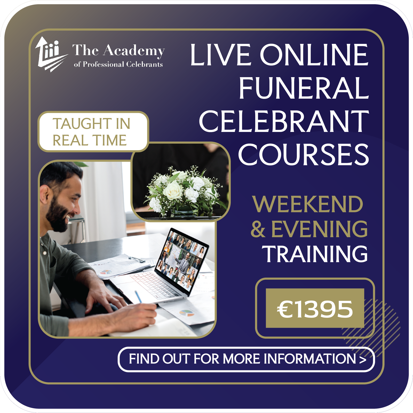 We offer accredited training for wedding, funeral, and naming celebrants across Europe, delivered live online and in-person.