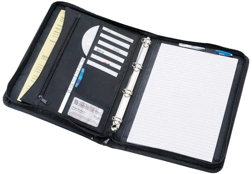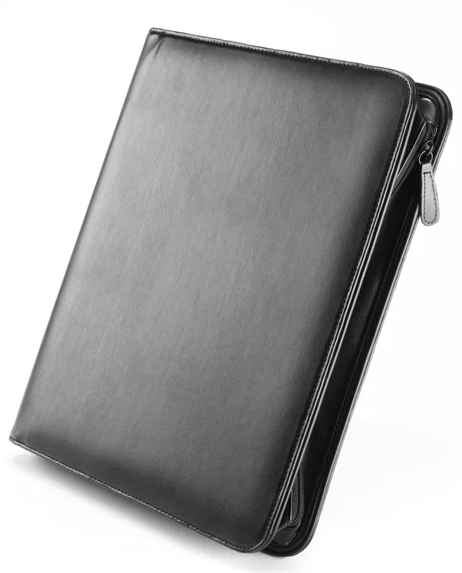 Crafted from leather, this A4 portfolio showcases dimensions of 33 x 3.5 x 26 centimetres. Its sleek design features a black lining, ensuring a sophisticated appearance. The portfolio includes a ring binder mechanism and an A4 legal writing pad, making it perfect for celebrants. With a zip close folder design, it offers secure storage for your important documents.