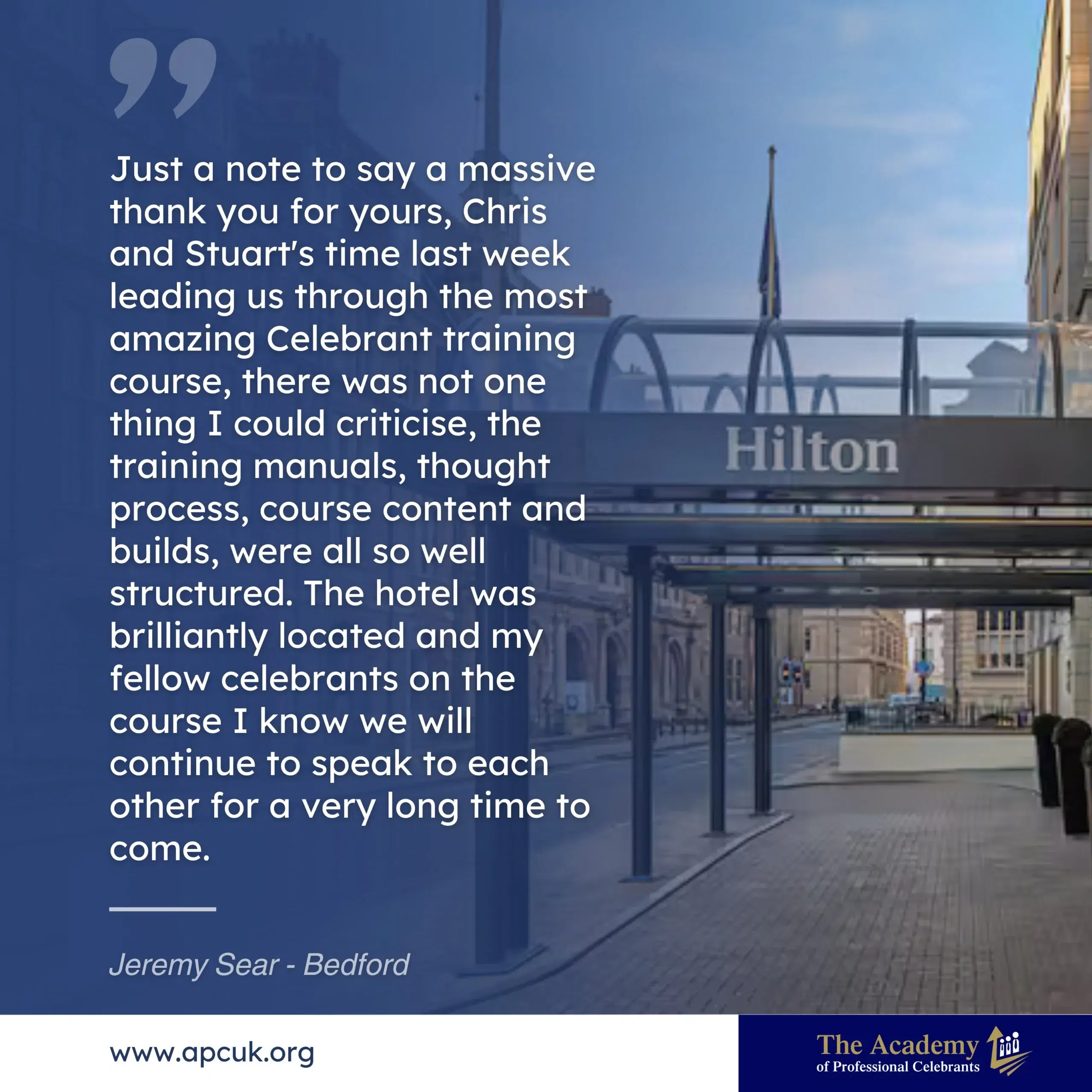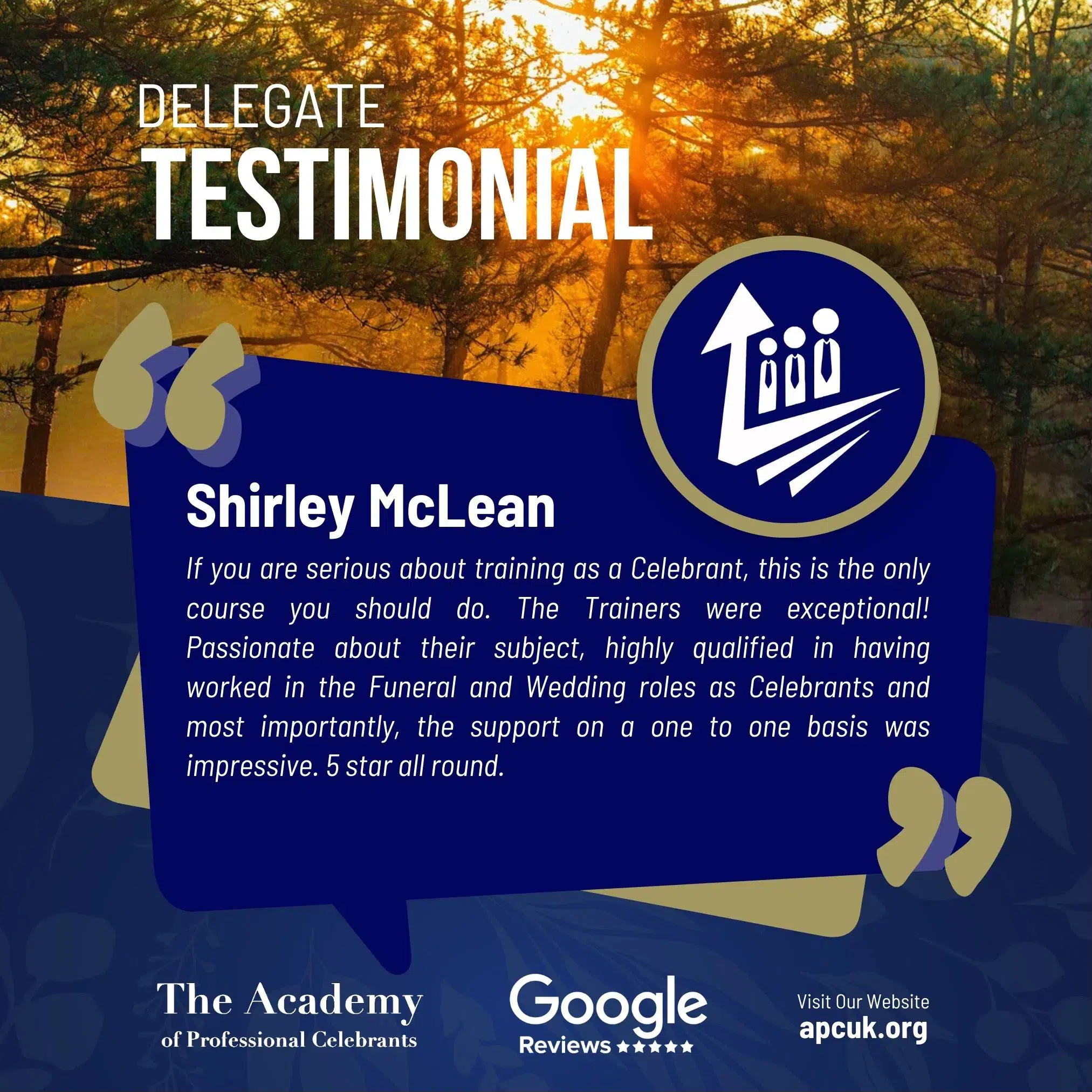 Our training courses have garnered praise from numerous satisfied students, and we take great pride in showcasing their testimonials. Here are a few reviews from our live online and in-person celebrant tuition